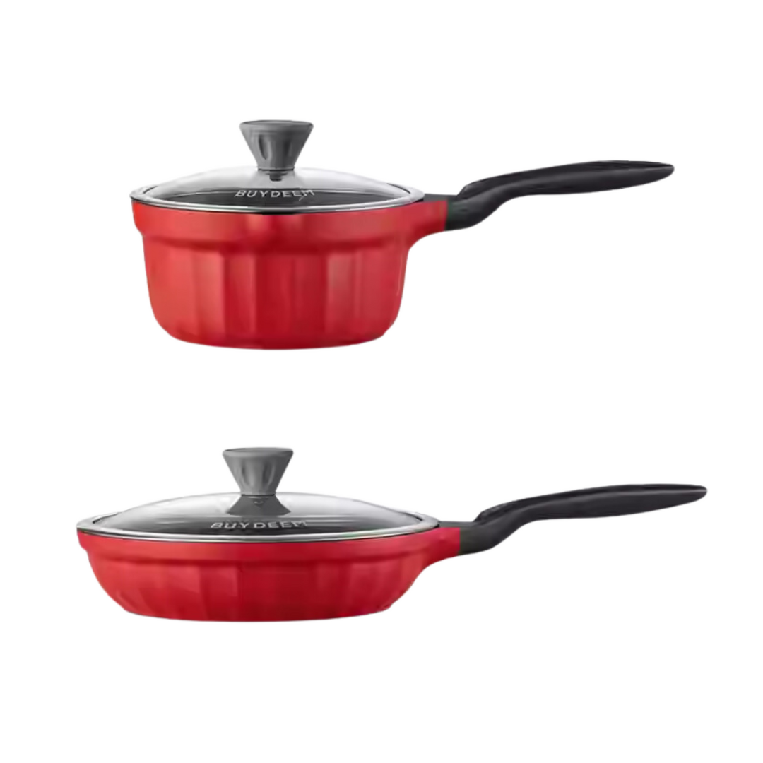 Cast Aluminum Nonstick Frying Pan & Saucepan, Ruby Red - Bundle Offer