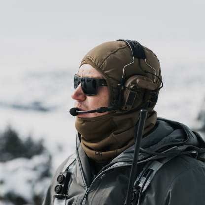 for an unbeatable combination of warmth, stretch, and breathability. It comes complete with a hinge for adjustable coverage in variable weather, and movement-mirroring stretch that won