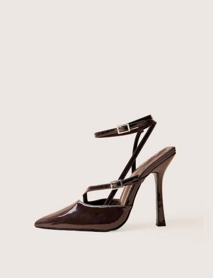 Make a striking impression with the Idol Dark Chocolate Patent Buckle Strappy Detail Stiletto Court High Heels. Featuring a rich patent finish and elegant buckle accents, these heels blend sophisticated style with bold design. The slender stiletto and intricate straps enhance your silhouette, adding confidence and glamour to any outfit. Perfect for elevating your look with a touch of refined attitude.