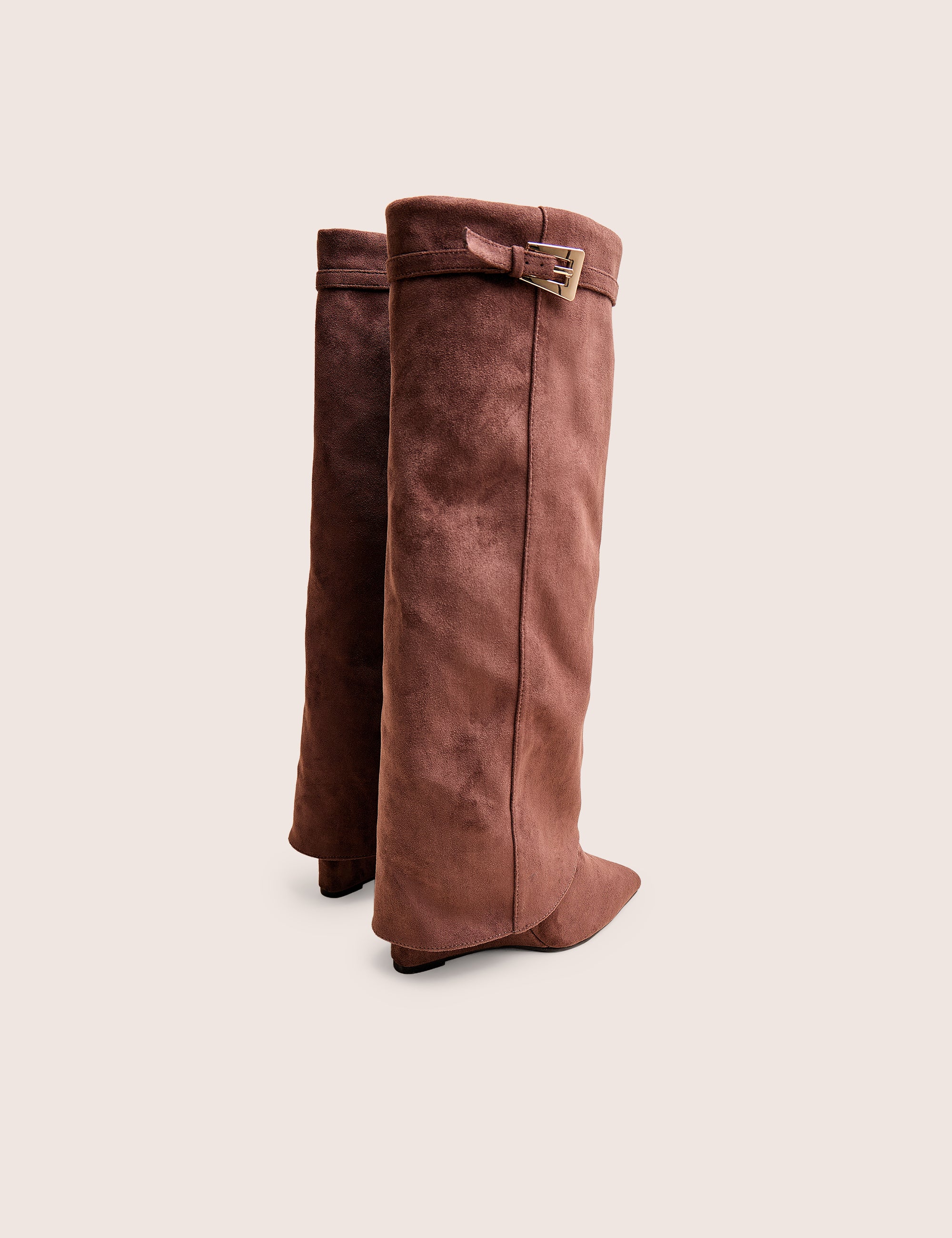 Add a touch of sophistication to your wardrobe with the Kola Brown Fold Over Buckle Detail Heeled Boots. Featuring a rich brown tone and a stylish fold-over design, these boots are enhanced with a bold buckle detail for a modern, chic finish. The comfortable heel height makes them ideal for all-day wear, seamlessly blending fashion and function. Perfect for elevating any outfit with a confident, refined edge.